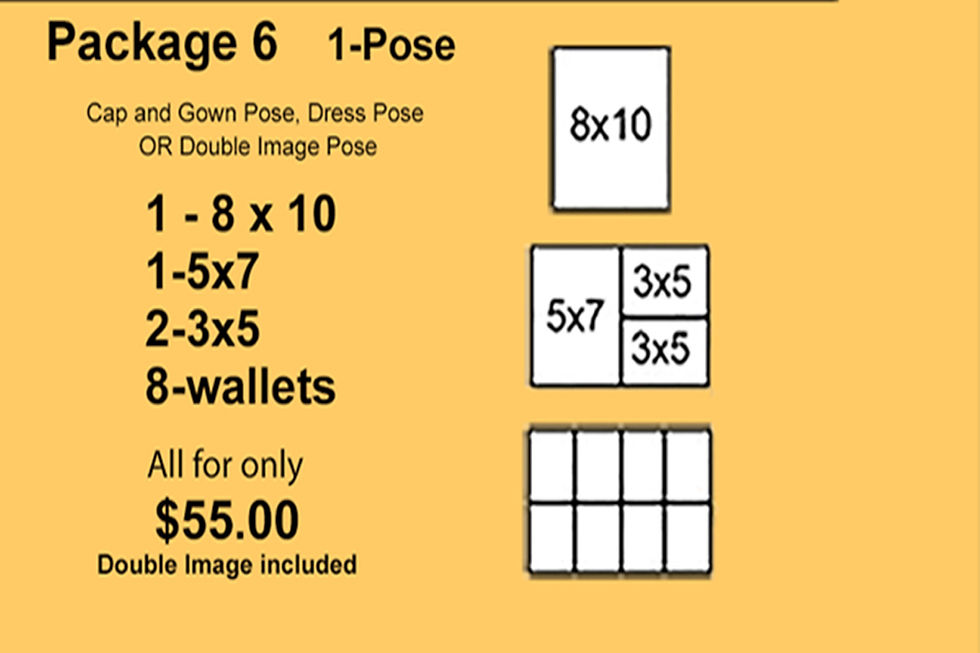 2. On picture day, all students will be photographed in Dress Clothes and Cap and Gowns. You will have a minimum of 6-8 poses to choose from for your package. Photos will be full body photos from head to toe.